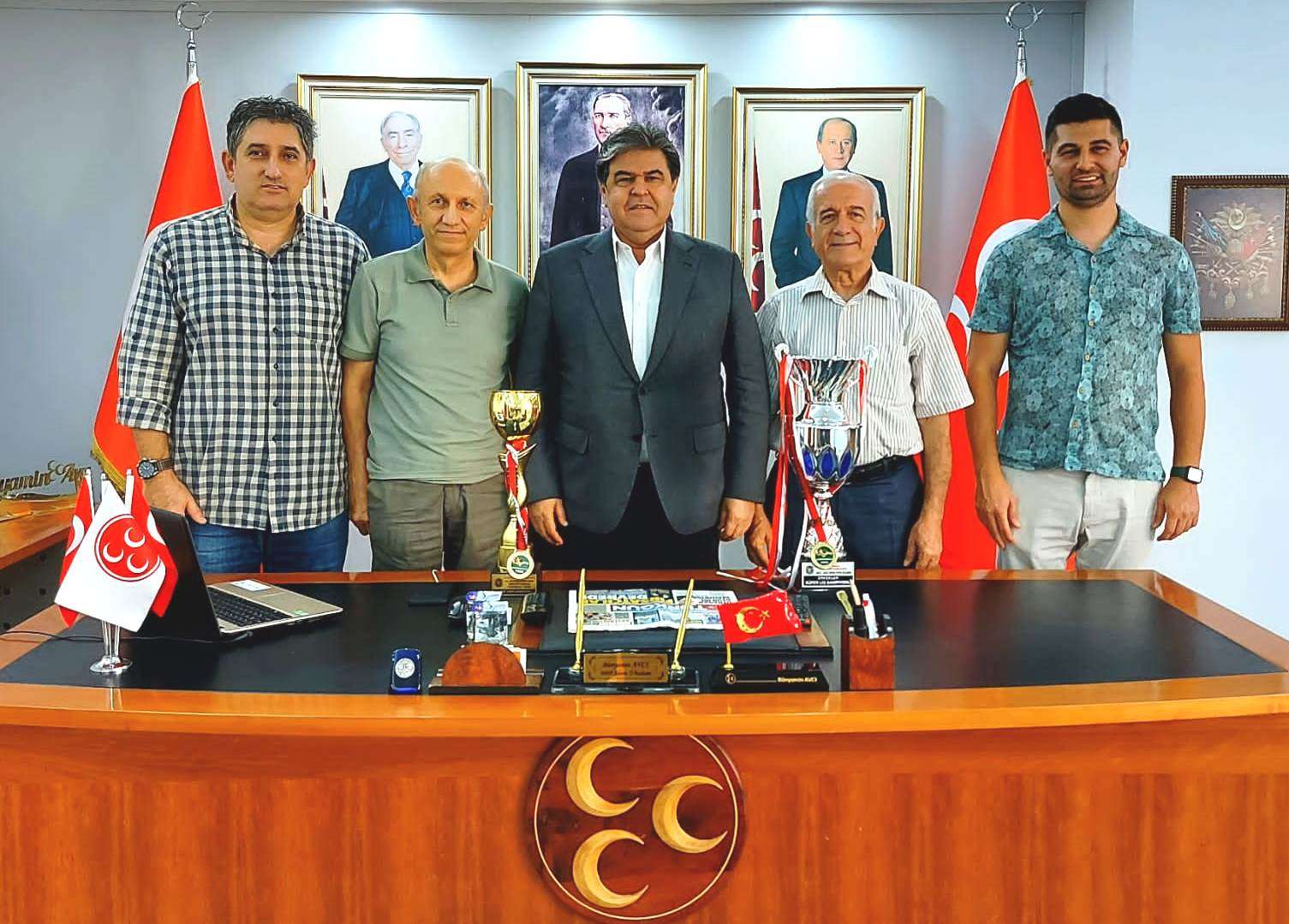 Çiltar Adana Masa Tenisi İhtisas Spor Kulübü Başkanı Dr. Ali Türemiş, Yönetici Kemal Sağ ve Medya Direktörü Kamil Yalçın Göl ile Masa Tenisi İl Temsilcisi Taci Menteş şampiyonluk kupalarıyla birlikte MHP Adana İl Başkanı Bünyamin Avcı’yı makamında ziyaret ederek, başarı öyküsünü anlatıp, tesis için yer tahsisi konusunda destek istediler.