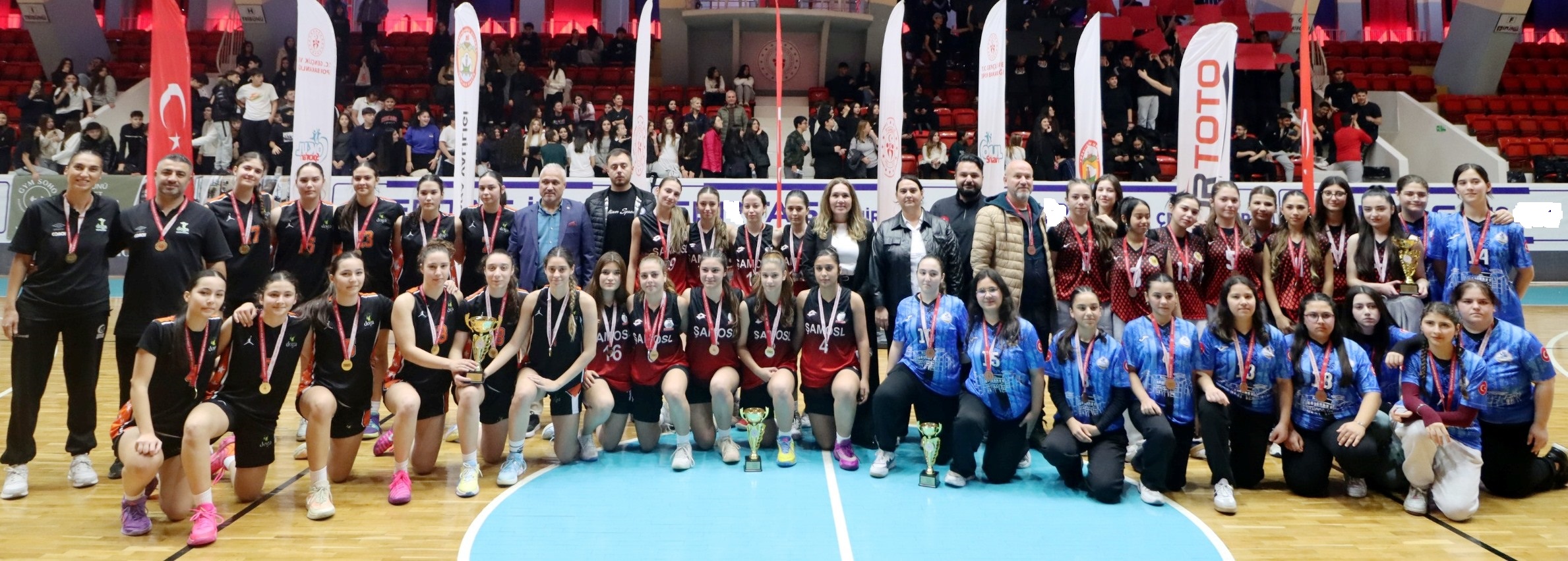 Menderes Spor Salonunda yapılan Okullar Arası Basketbol Genç Kızlar ve Genç Erkekler İl Birinciliği müsabakaları sonrası yapılan kupa töreninde şampiyonluk kupası ile madalyaları Seyhan Gençlik ve Spor İlçe Müdürü Halit Yılmazel, Okul Sporlarından Sorumlu Şube Müdürü Duygu Akgünler ile Basketbol İl Temsilcisi Levent Deringöl verdiler.